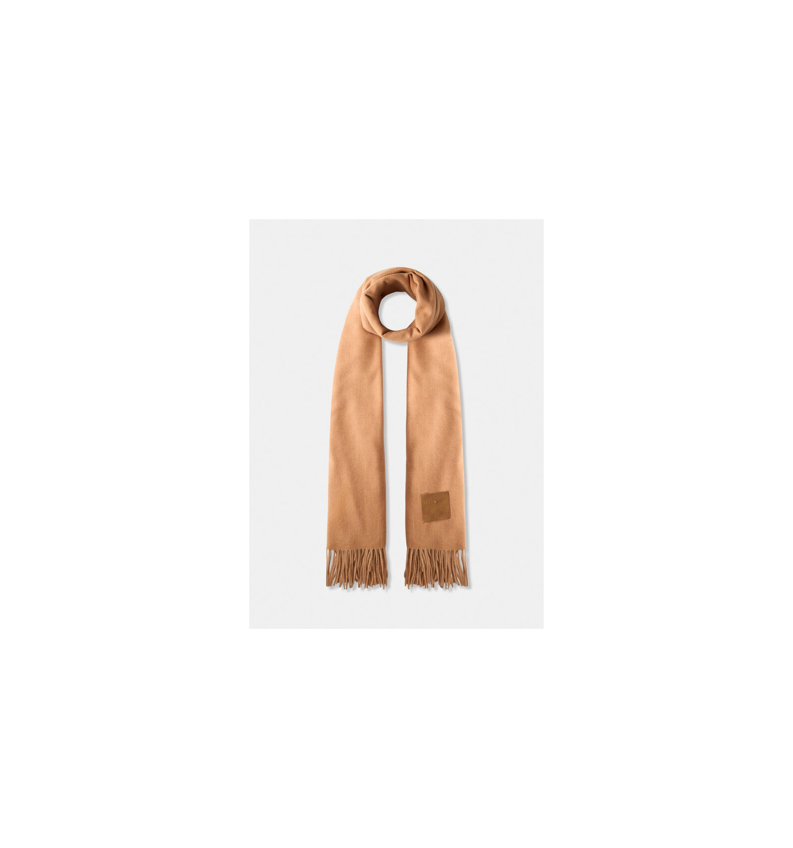 Stola rossa Realizzata in tessuto garzato Patch logata Bordi con frange 70 x 180 cm