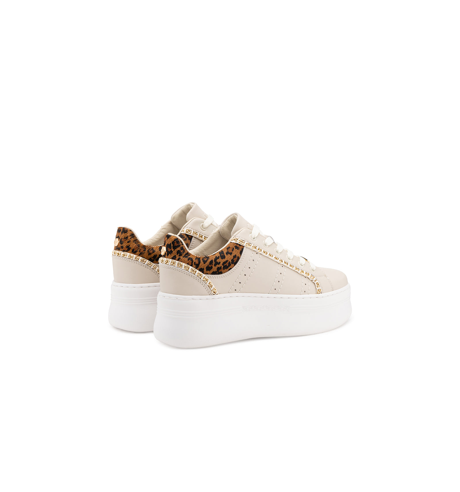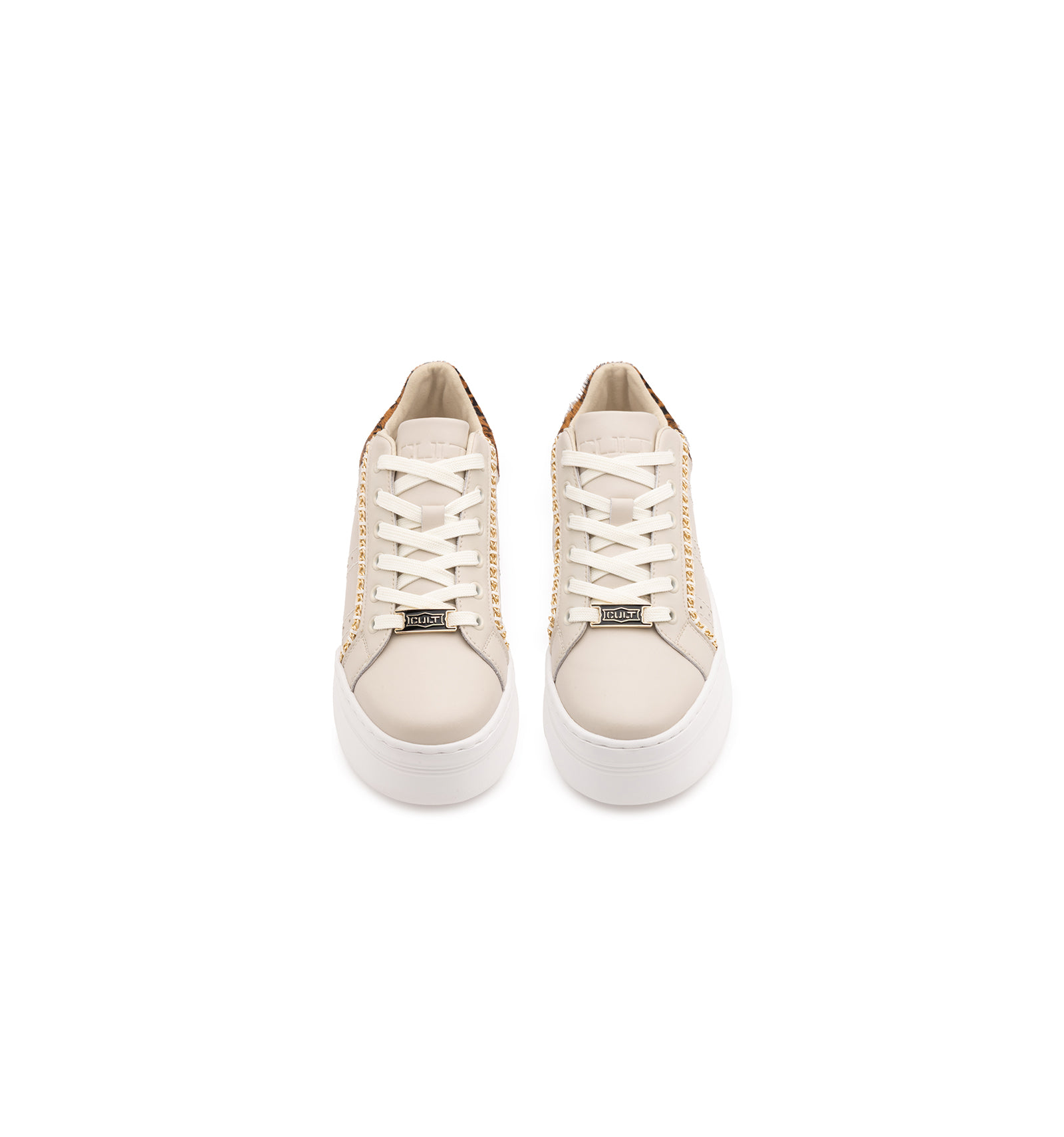 Sneakers unica, si distingue per il suo design low-top raffinato e grintoso, grazie a dettagli animalier, sottili catene metalliche decorative e distintiva targhetta con il logo CULT. Pensata per chi vuole osare senza rinunciare allo stile, la suola platform e la silhouette slanciata, rendono questa sneakers perfetta con i jeans e con outfit più ricercati.